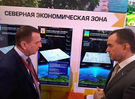 Глава администрации (губернатор) Краснодарского края Вениамин Кондратьев посетил выставочные стенды муниципальных образований края.