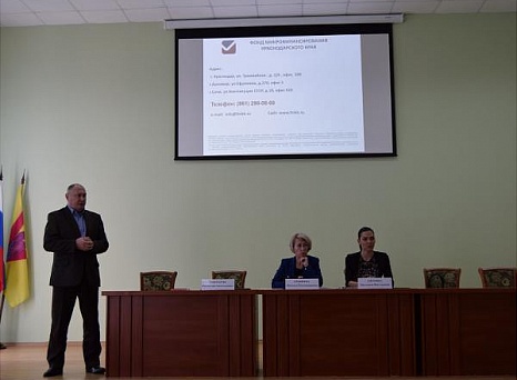 В совете приняли участие представители малого и среднего бизнеса района, представитель Гарантийного фонда Краснодарского края Анохина Виктория Викторовна и заместитель исполнительного директора некоммерческой организации "Фонд микрофинансирования" Гончаров Ростислав Анатольевич. В ходе Совета были рассмотрены, такие вопросы как: субсидирование части затрат на уплату первого взноса при заключении договора финансовой аренды (лизинга); субсидирование, части затрат, связанных с уплатой процентов по кредитам, субсидирование части затрат субъектов малого предпринимательства на ранней стадии их деятельности, форма отчетности 6-НДФЛ, особенности применения упрощенной и патентной системы налогообложения и патентной.